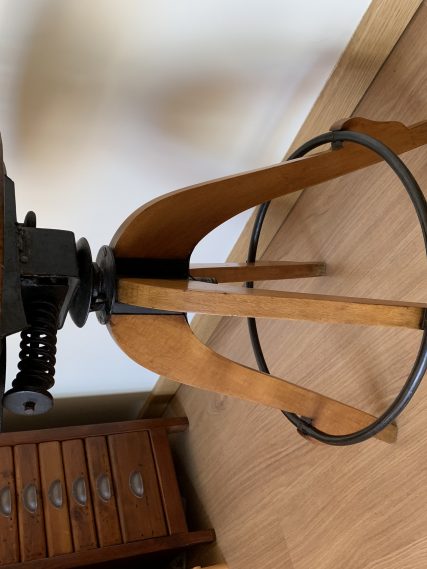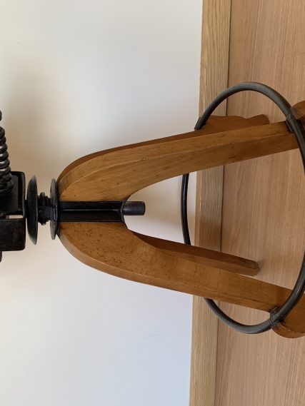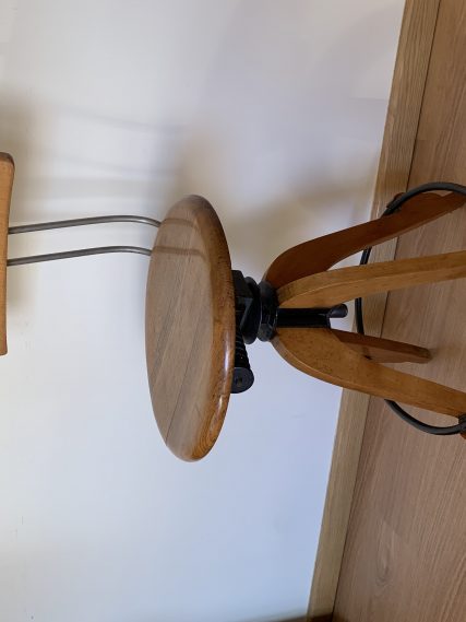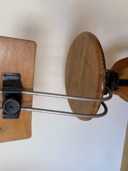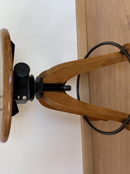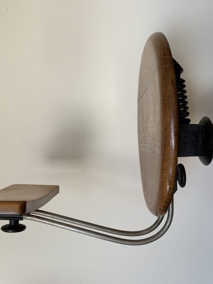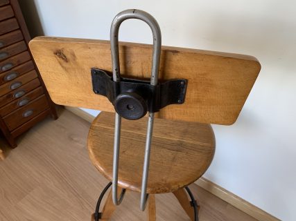 Adjustable, it has a mechanism and a cast iron screw to regulate the height of the seat and the position of the backrest. Lower iron ring to support the feet. Very difficult to find, and less in this state. Precious!