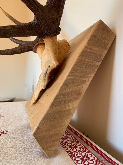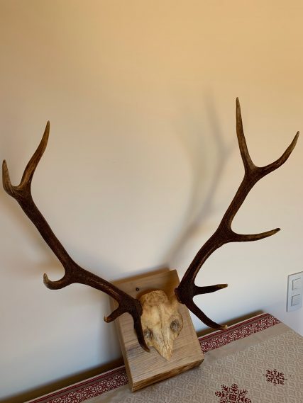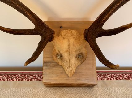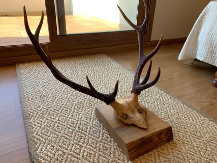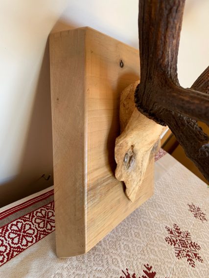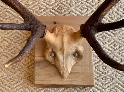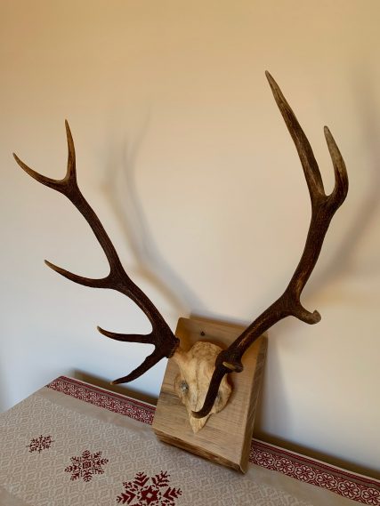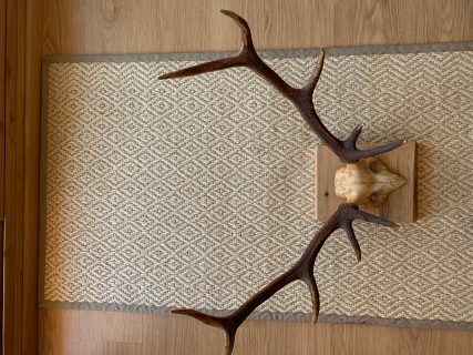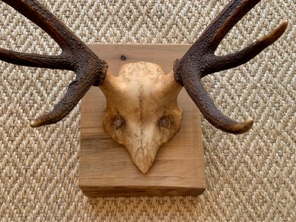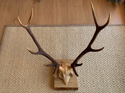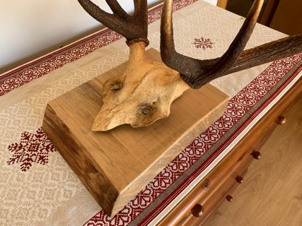 Precious 10-pointed deer antlers. Presented on a high quality beech wood base with a natural wax finish. The beech wood base has a thickness of 5.5 CM which gives it a lot of personality and character. Each piece is unique!