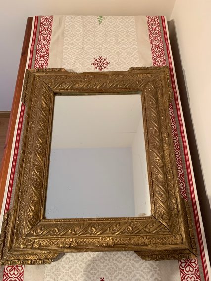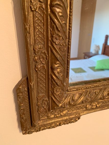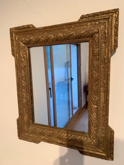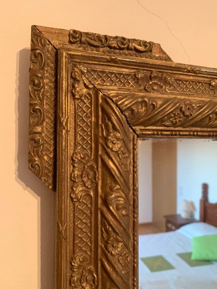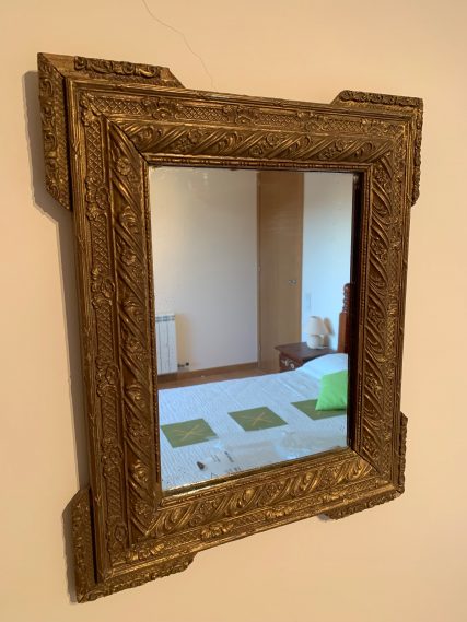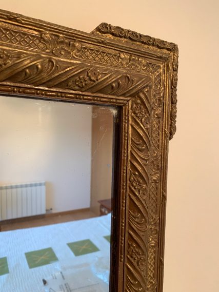 Beautiful and authentic French Modernist mirror of pure art deco ethyl. It has an incredible and authentic patina. It comes from an old manor house in the walled town of Mont-Lluís. As found, it has only been cleaned. Unique piece.