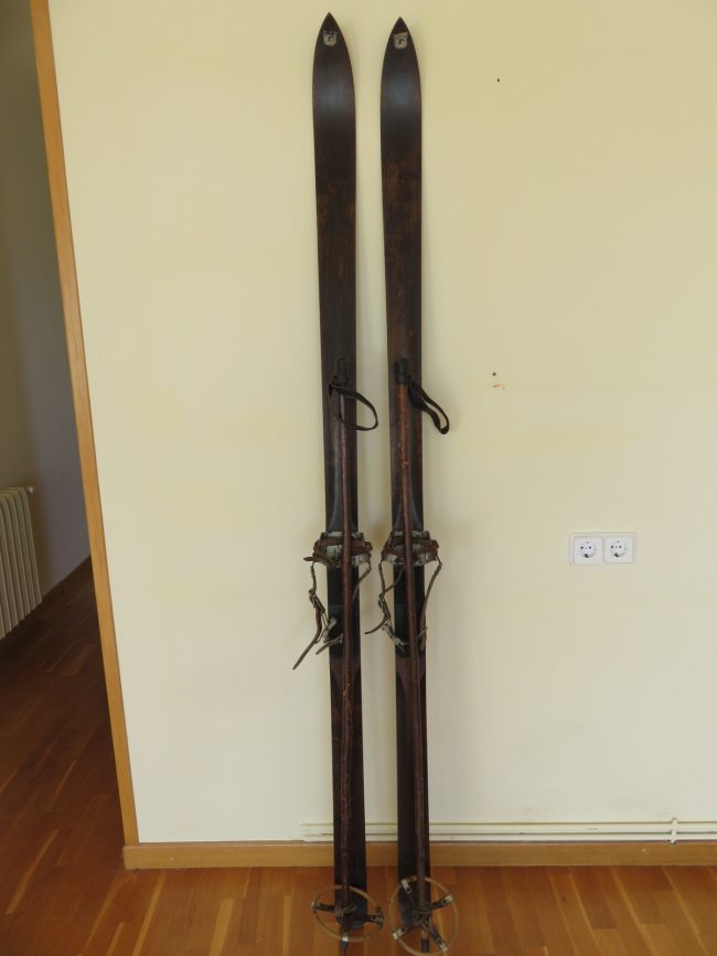 ArtículoArtículo Esquís de madera antiguos Ref: B016 VENDIDO Preciosos esquís alpinos de madera antiguos y bastones. Enormes, completos y originales con preciosa pátina. Madera en relieve, robusta y acabados con las clásicas puntas. Con fijaciones y tiradores Nevé, reposa pies originales y correas de cuero. Bastones de bambú clásicos Korpela fabricados en Finlandia. Empuñaduras y…