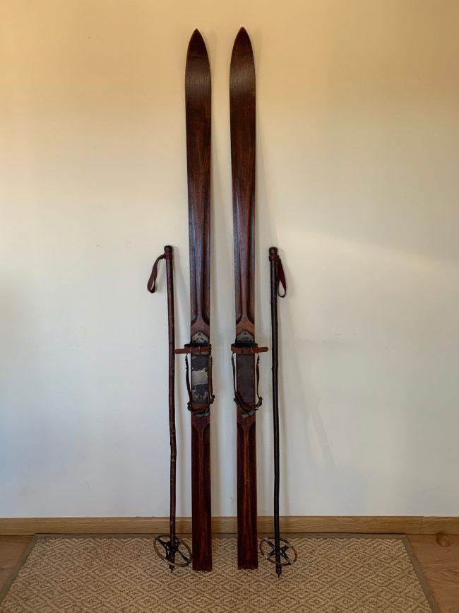 ArtículoArtículo Conjunto esquís de fondo y palos s.XIX Ref: B004 € 380.00 Precioso conjunto de esquís de fondo o nórdicos muy antiguos. Son del periodo 1880 – 1910. Han sido restaurados por completo, manteniendo sus rasgos originales, pátina y esencia. Están completos, con sus fijaciones originales y palos de madera. Los cinturones de sujección de…