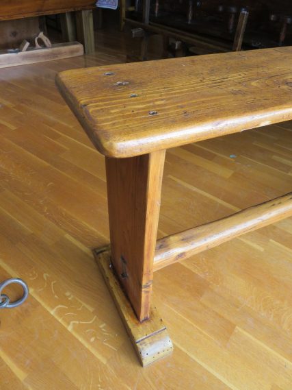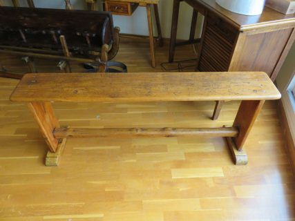 Antiguo banco rústico de 3 plazas. Proviene de la tienda de una antigua lechería de la Provenza francesa. Algunos clientes se sentaban en él mientras esperaban su turno. Restaurado y estructura reforzada para poder darle uso. Buen estado de conservación.