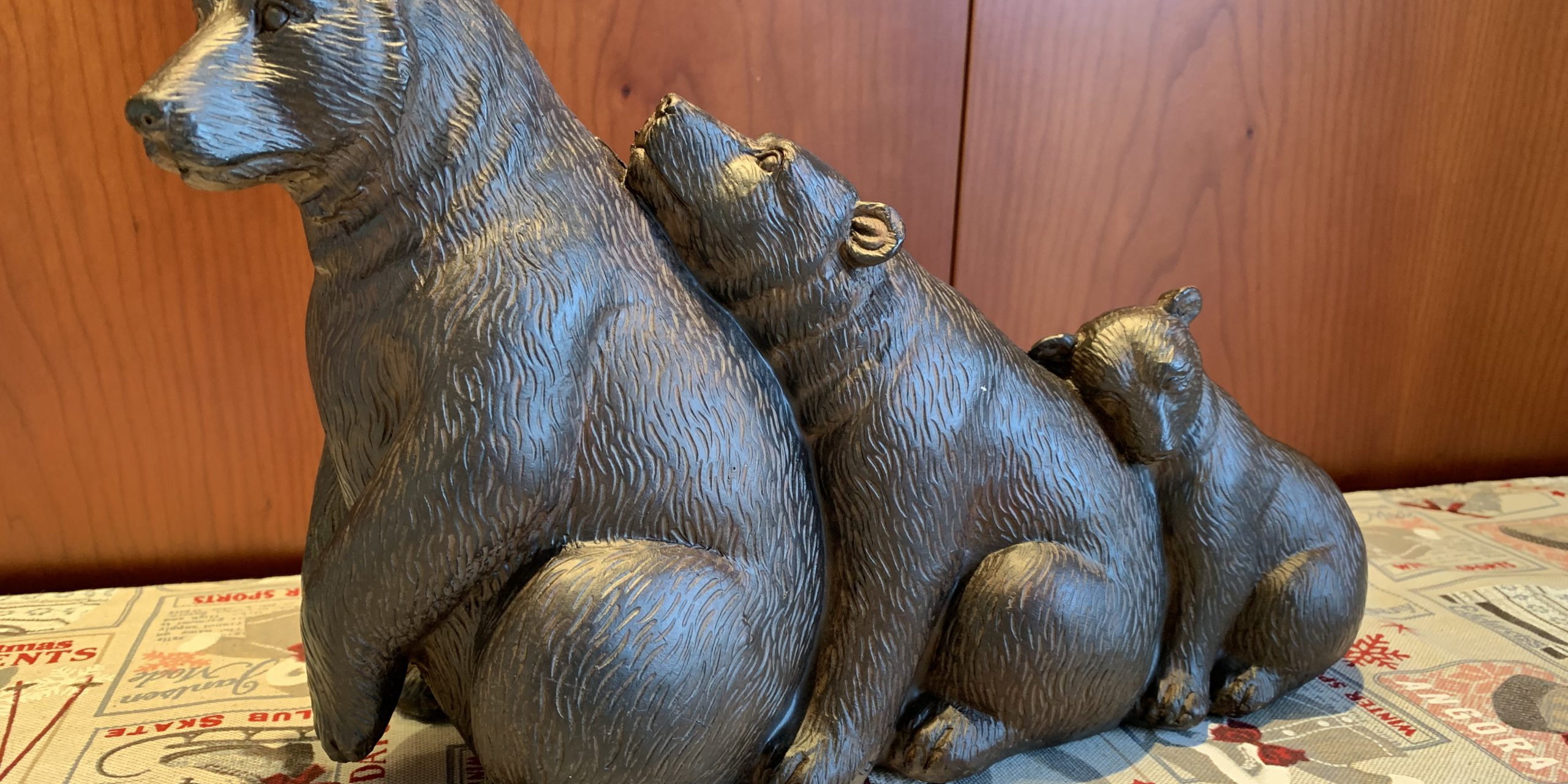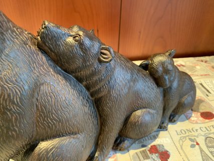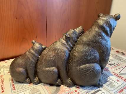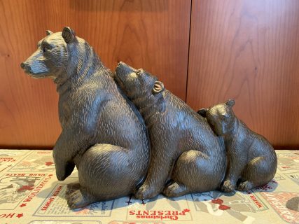 Original y autèntica escultura de 3 simpáticos osos de montaña en hilera. Escultura de calidad hecha de resina con muchos detalles y acabados. Muy original y decorativa. Ideal para decorar ambientes de montaña, rústicos y estilo vintage. Se adapta también a otros ambientes.