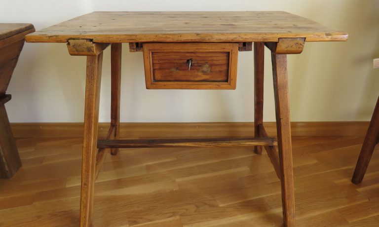 ArtículoArtículo Mesa tocinera de matanza antigua Ref: A035 VENDIDA Curiosa mesa tocinera antigua de matanza con su cajón, cerradura y llave. Bonita pátina de color roble en tablero y patas. Traveseras laterales de las patas con señales de uso y trabajadas con bonitas cenefas en la parte inferior. Tocinera de calidad. Restaurada preservando su identidad…