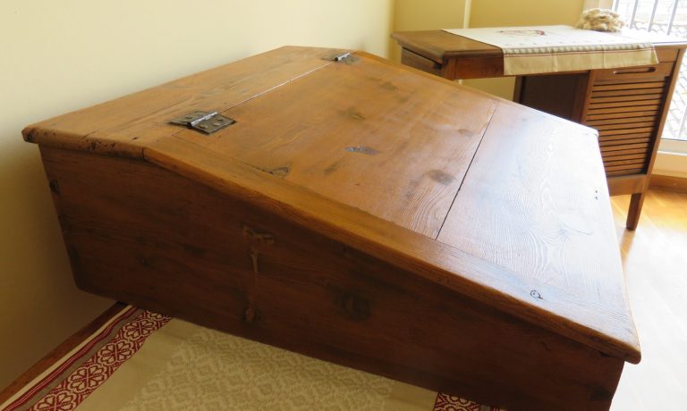 ArtículoArtículo Escritorio industrial de sobremesa Ref: B030 € 230.00 Precioso y auténtico escritorio cajón de antigua fábrica textil. Restaurada siguiendo el estilo original y obteniendo una maravillosa pátina en roble. Lleva bisagras, llave y cerradura con remaches originales, además de la palanca para aguantar la tapa abierta. La llave permite cerrar el cajón donde el…