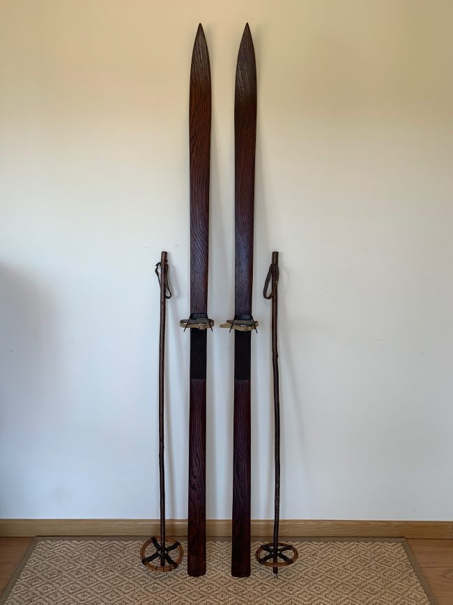 ArtículoArtículo Set of very old Children Alpine Skis Ref: B005 € 270.00 Set of very old Children alpine skis. From the period 1890-1920 approximately since they still do not have the steel edges. Complete with new bindings, poles and leather straps. Bamboo canes with polished leather bracelets, disks with leather straps and iron tips. They…
