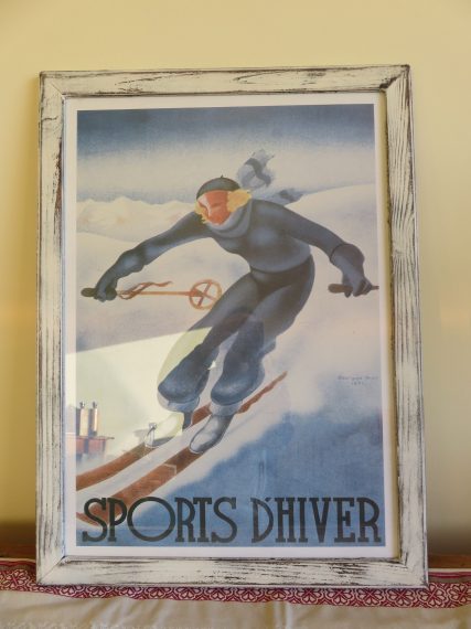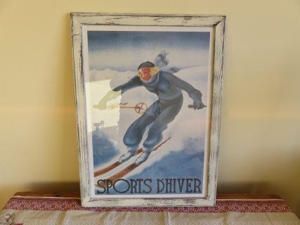 Framed Art Print of Sports D’Hiver sheet made by the renowned French illustrator Georges Arou (1931). Ideal to decorate any vintage mountain environment.