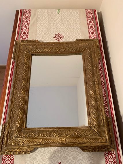 Precioso y auténtico espejo modernista francés de etilo art deco puro. Tiene una pátina increíble y auténtica. Proviene de antigua casa señorial de la localidad amurallada de Mont-Lluís. Tal cual se encontró, sólo se ha limpiado. Pieza única.