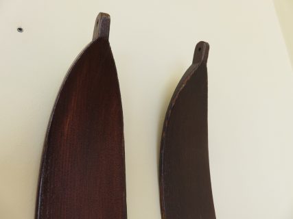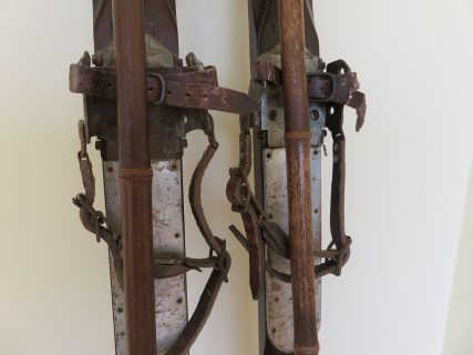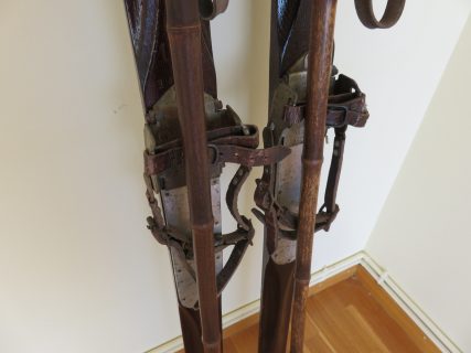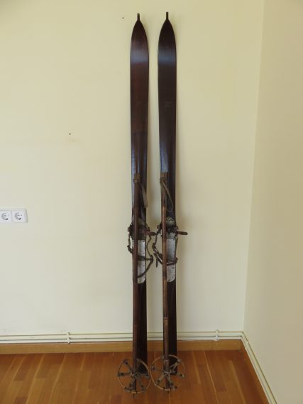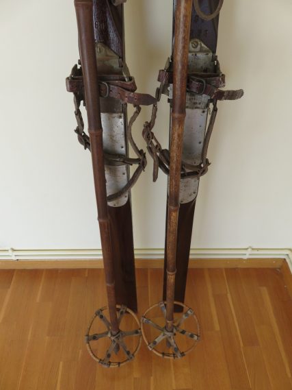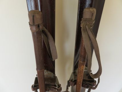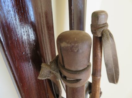 Los palos de caña de gran calidad en tono oscuro (existen pocos), empuñaduras y brazaletes de sujeción de cuero originales con el trenzado habitual de la época, discos de caña con refuerzos especiales de competición. Solo limpiados y tal como se encontraron. Ideales para colgar en pared de casa de montaña y rememorar esos JJ.OO.. Ideal coleccionistas!