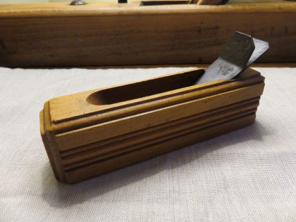 Curioso y diminuto cepillo de maestro ebanista. Se usaba para rebajar la madera de mueble pequeño, en maquetas hechas de madera, y acabados en los que se requería precisión. Madera muy bien trabajada y con señales de uso. Completo, con su hoja de corte y plancha ajustadora. Restaurado preservando su condición original. Existen muy pocas unidades. Ideal coleccionistas.