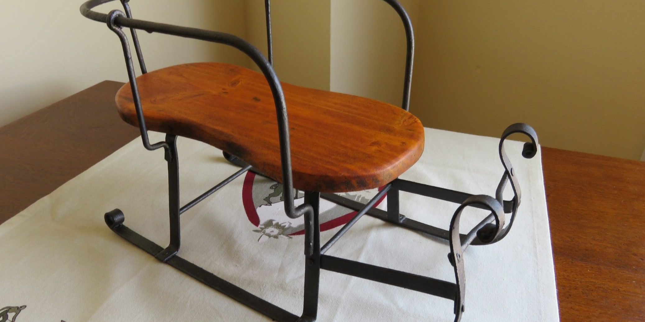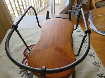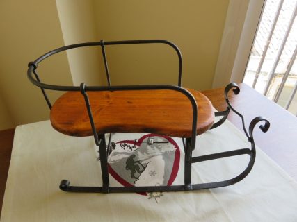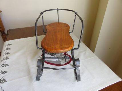 Precioso trineo de juguete para muñecas. Auténtica pieza difícil de encontrar hoy en día. Asiento con bonita pátina en color roble, barandilla y palas con sujeciones originales. Pieza completa y restaurada preservando su estado original. Proviene de colección de juguetes alpinos de enorme mansión del Black Forest, suroeste de Alemania. Ideal coleccionistas.
